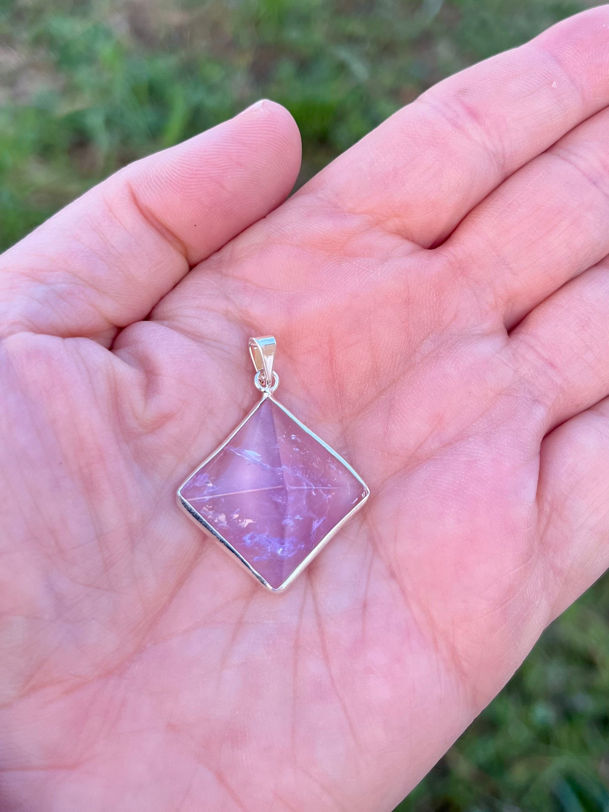 Il Ciondolo Piramide è uno splendido pendente con una piccola piramide di cristallo. Ogni ciondolo è diverso in quanto ogni pietra è unica.
