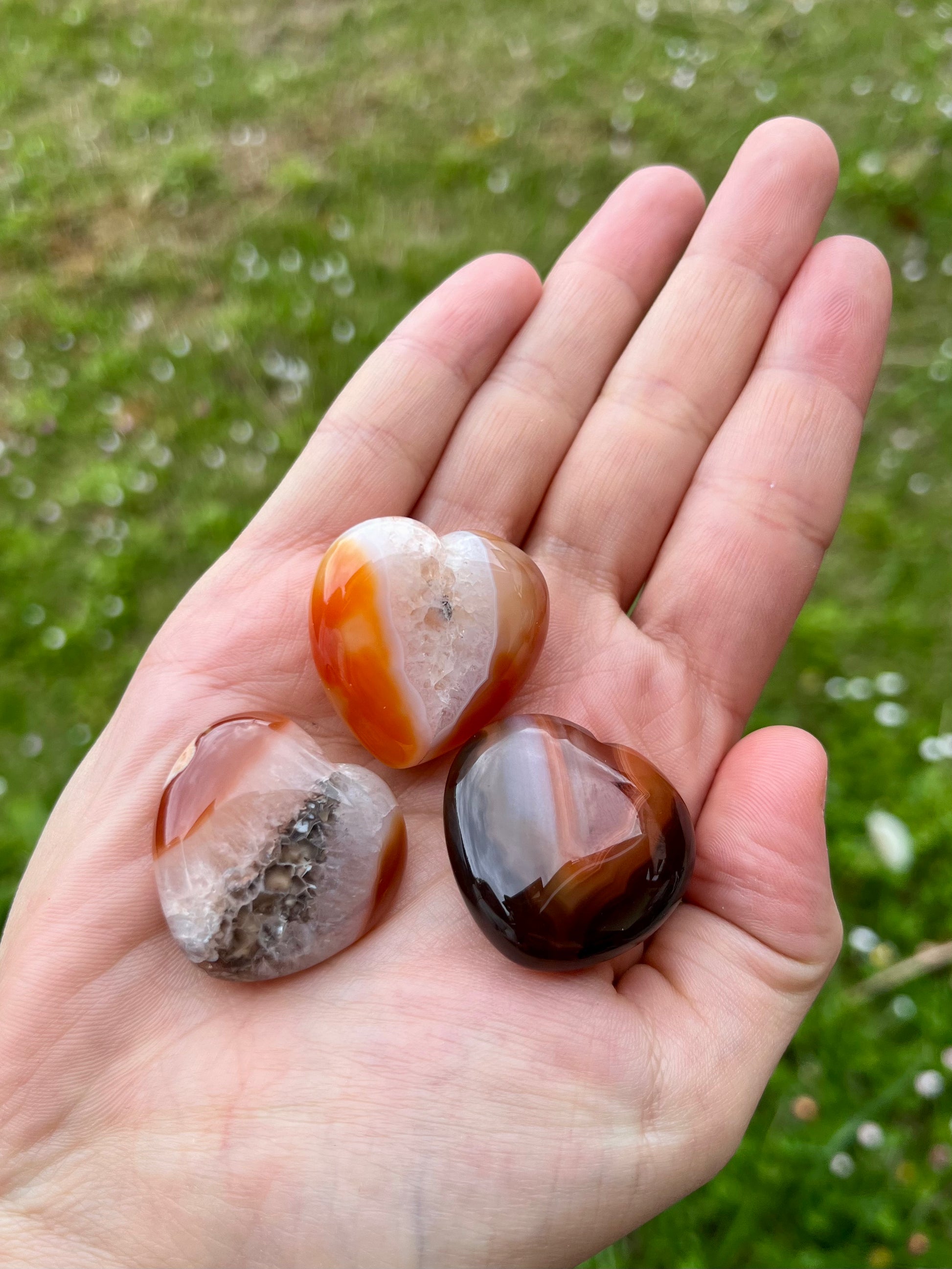 Cuore di Corniola: pietra di energia e vitalità, ideale per ritrovare motivazione e forza interiore. Si dice che sostenga il coraggio e protegga dalle energie negative, infondendo stabilità e sicurezza.
